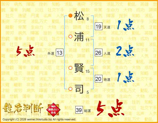 松浦賢司さんの総運は39画の5点!
