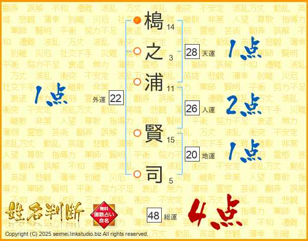 槝之浦賢司さんの総運は48画の4点!