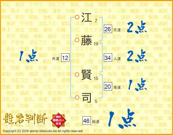 江(7画)藤(19画) 賢(15画)司(5画)