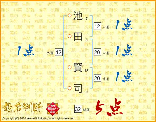 池田賢司さんの総運は32画の5点!