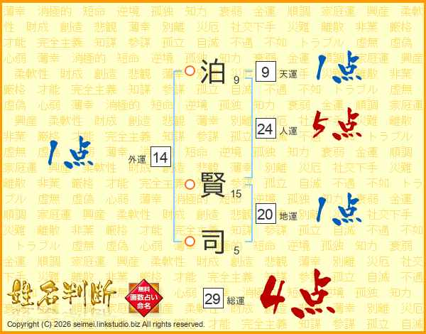 泊賢司さんの総運は29画の4点!