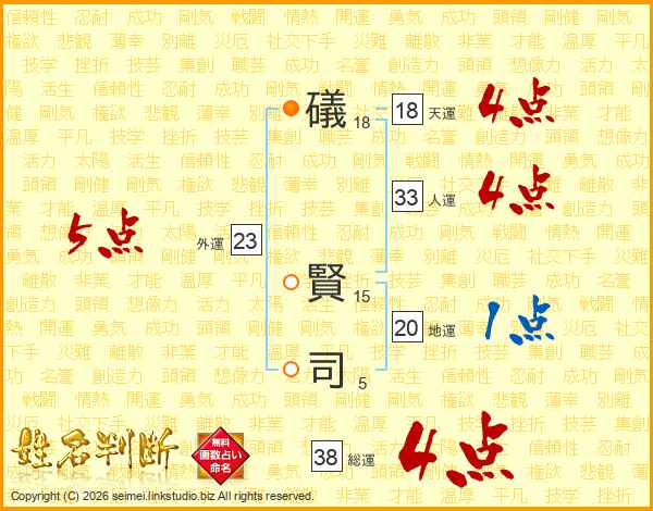 礒賢司さんの総運は38画の4点!