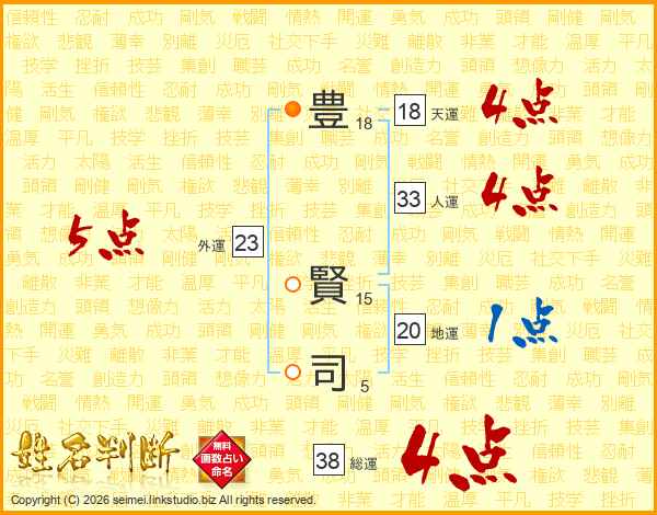 豊賢司さんの総運は38画の4点!