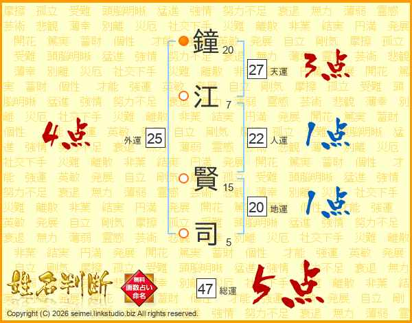 鐘江賢司さんの総運は47画の5点!