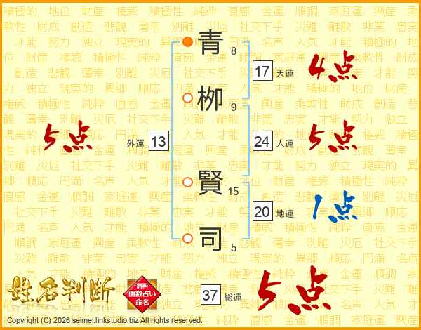 青栁賢司さんの総運は37画の5点!