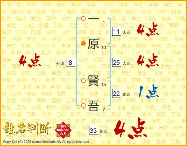 一原賢吾さんの総運は33画の4点!
