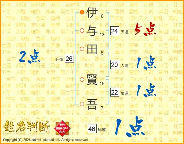 伊与田賢吾さんの総運は46画の1点!