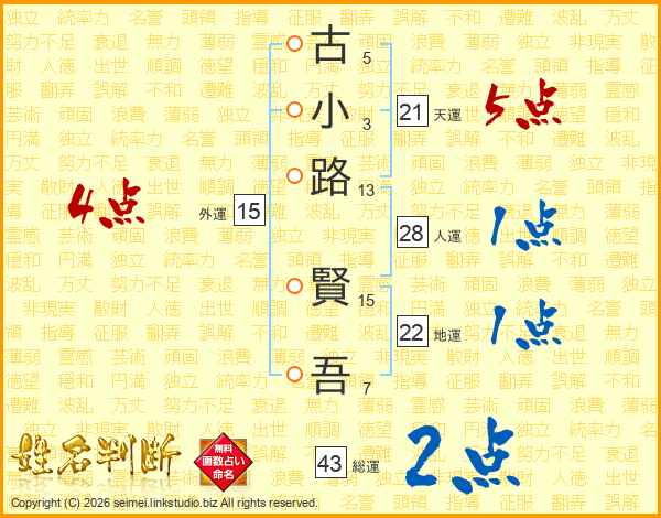古小路賢吾さんの天運は21画の5点!