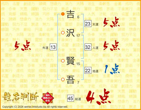 吉沢賢吾さんの総運は45画の4点!