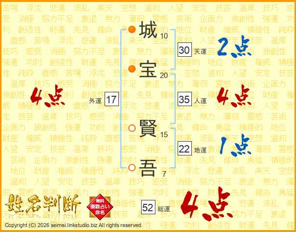 城宝賢吾さんの総運は52画の4点!