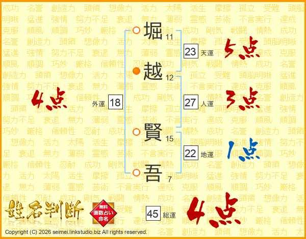 堀(11画)越(12画) 賢(15画)吾(7画)