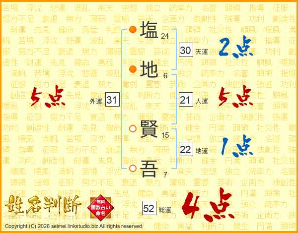 塩地賢吾さんの総運は52画の4点!