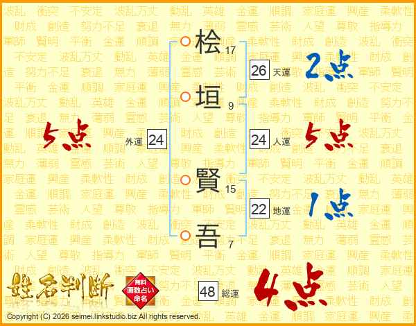桧垣賢吾さんの総運は48画の4点!