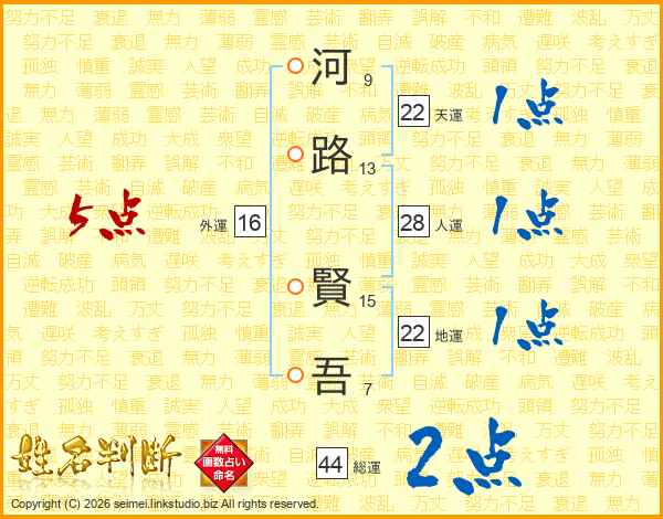 河路賢吾さんの総運は44画の2点!
