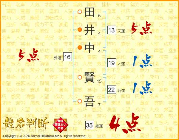 田井中賢吾さんの総運は35画の4点!