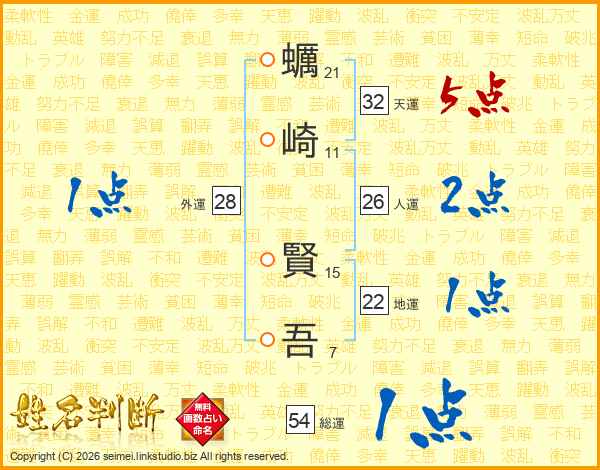 蠣崎賢吾さんの天運は32画の5点!