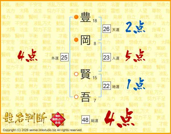 豊岡賢吾さんの総運は48画の4点!