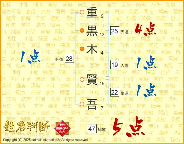 重黒木賢吾さんの総運は47画の5点!