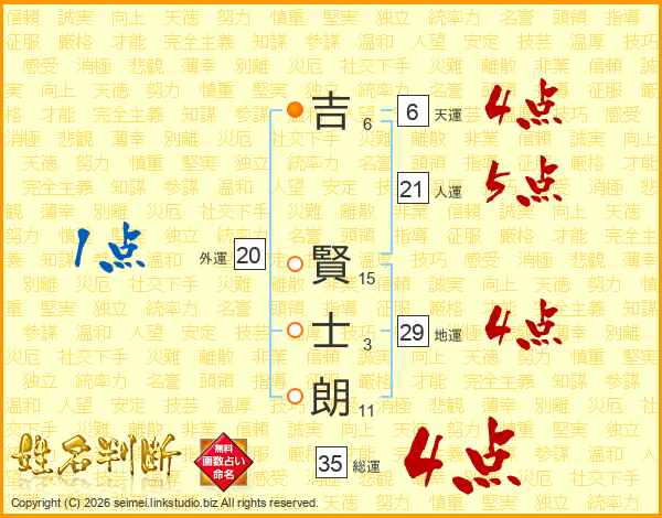 吉賢士朗さんの総運は35画の4点!