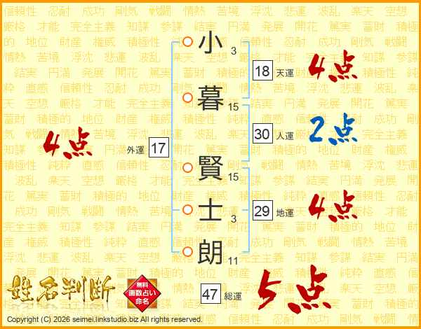 小暮賢士朗さんの総運は47画の5点!