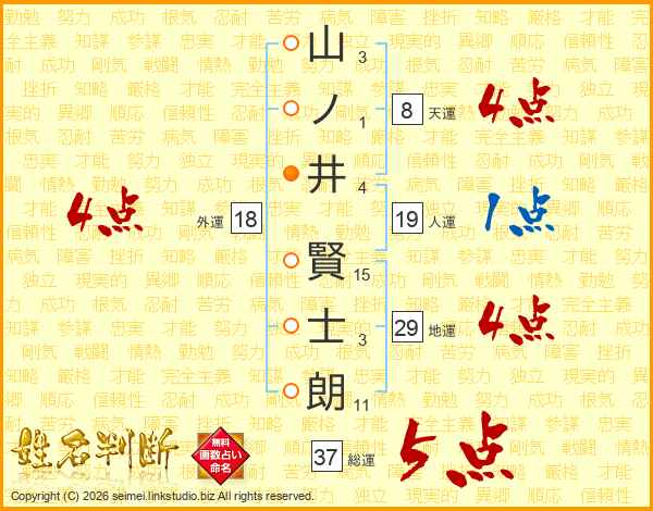 山ノ井賢士朗さんの総運は37画の5点!