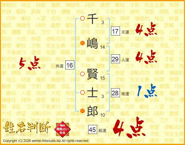 千嶋賢士郎さんの総運は45画の4点!