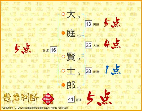 大庭賢士郎さんの総運は41画の5点!