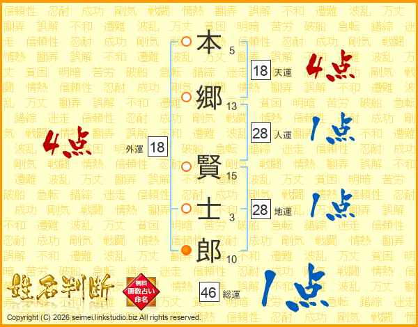 本郷賢士郎さんの総運は46画の1点!
