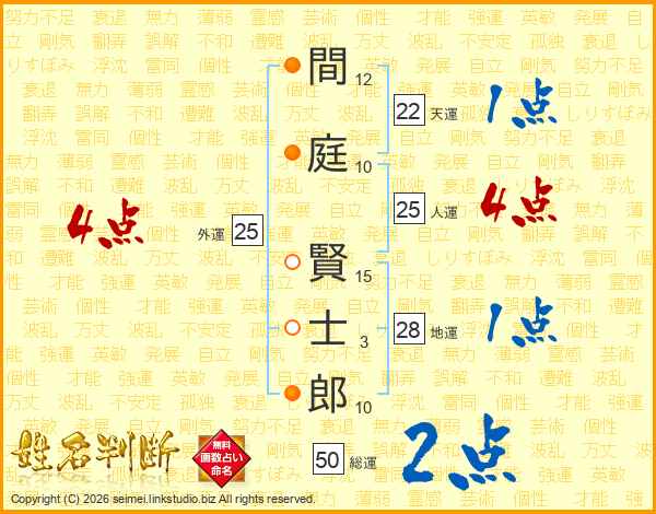間庭賢士郎さんの人運は25画の4点!