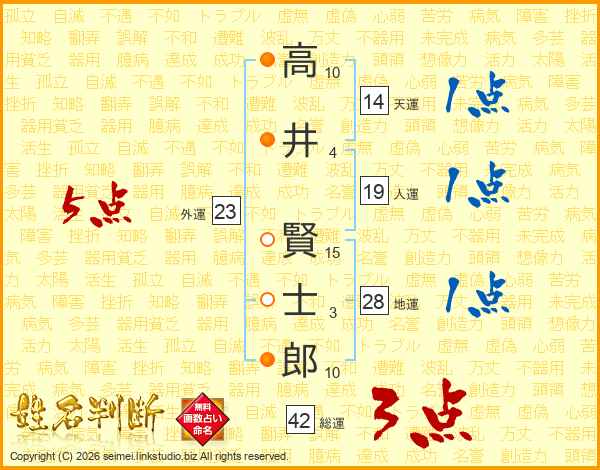 高井賢士郎さんの総運は42画の3点!