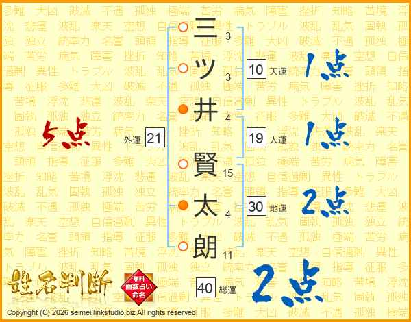 三ツ井賢太朗さんの地運は30画の2点!