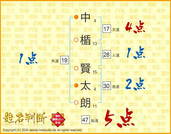 中楯賢太朗さんの総運は47画の5点!