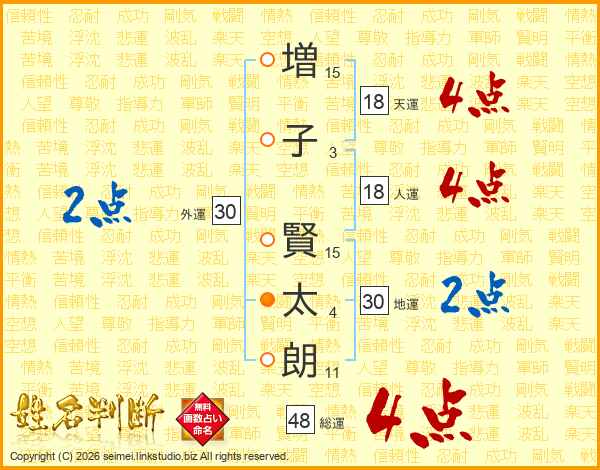 増子賢太朗さんの人運は18画の4点!