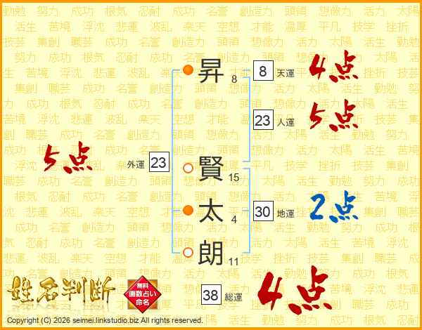 昇賢太朗さんの総運は38画の4点!