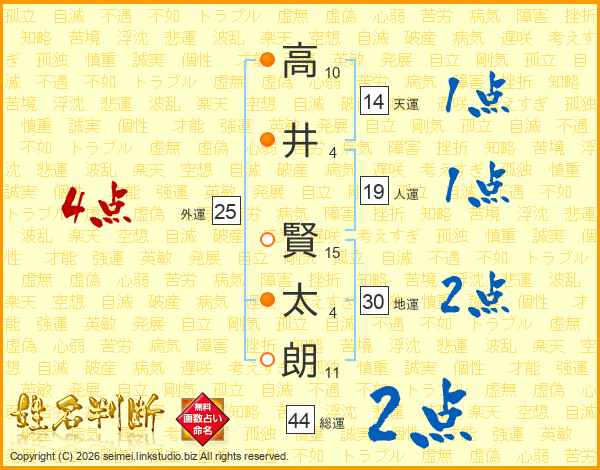 高井賢太朗さんの天運は14画の1点!