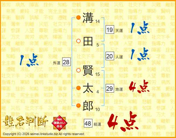 溝田賢太郎さんの総運は48画の4点!