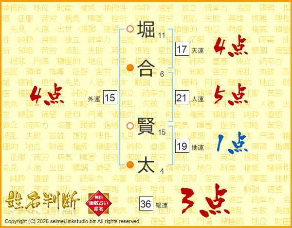 堀合賢太さんの天運は17画の4点!