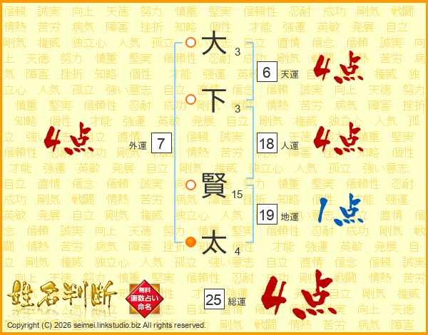大下賢太さんの人運は18画の4点!