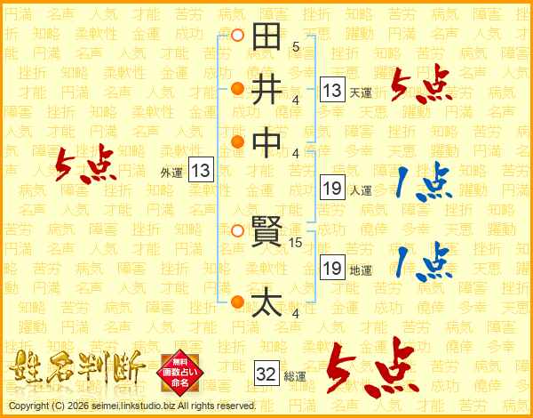 田井中賢太さんの総運は32画の5点!