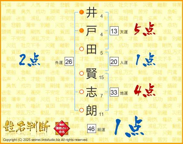 井戸田賢志朗さんの総運は46画の1点!