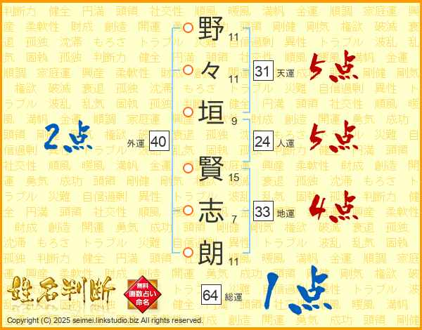 野々垣賢志朗さんの地運は33画の4点!