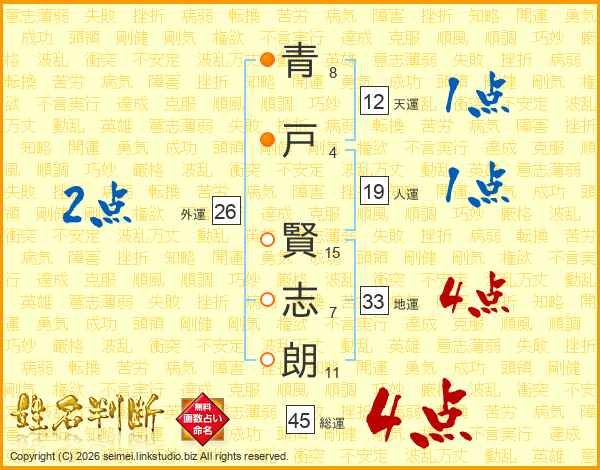 青戸賢志朗さんの総運は45画の4点!