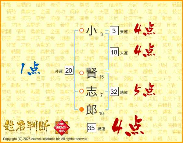 小賢志郎さんの総運は35画の4点!