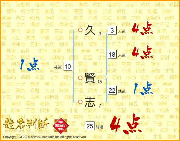 久賢志さんの総運は25画の4点!