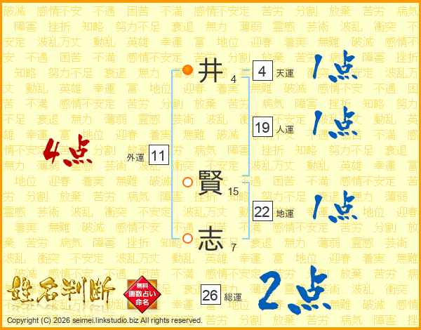 井(4画) 賢(15画)志(7画)