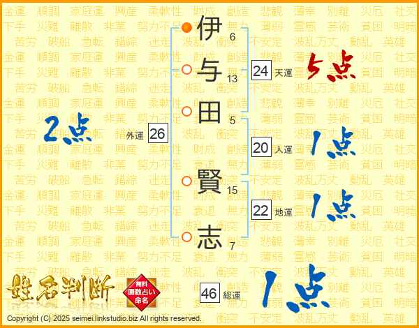 伊与田賢志さんの総運は46画の1点!