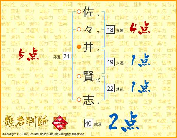 佐々井賢志さんの総運は40画の2点!