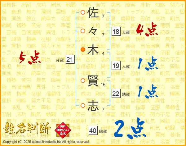 佐(7画)々(7画)木(4画) 賢(15画)志(7画)