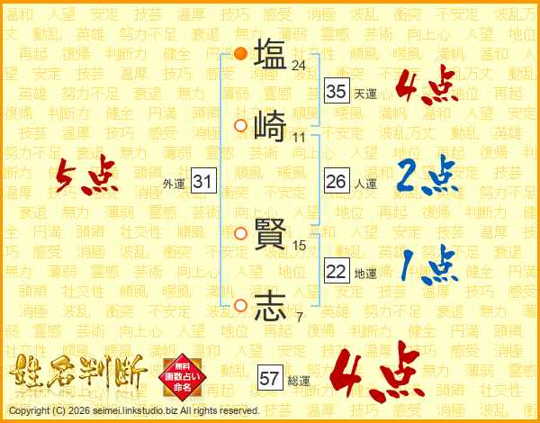 塩崎賢志さんの総運は57画の4点!