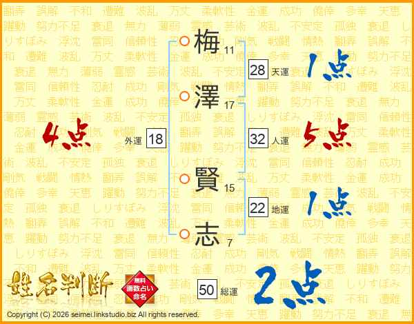 梅澤賢志さんの人運は32画の5点!